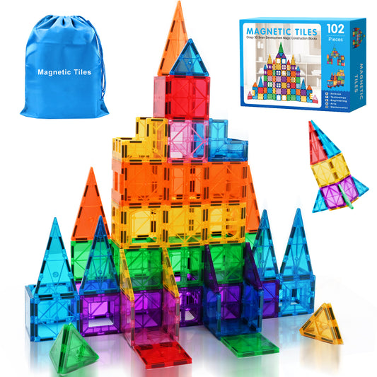 Magnetic Tiles 102pcs Building Blocks Stem Toys for 3+ Year Old Boys and Girls Montessori Toys Toddler Kids Gifts Parents Approved Sensory Toys